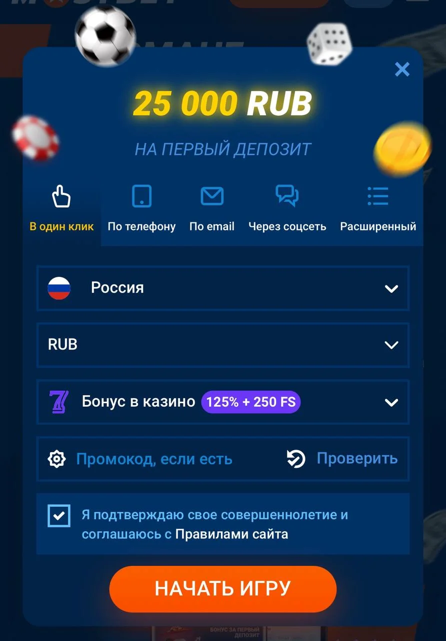 Для того, чтобы играть на деньги, необходимо зарегистрироваться в букмекерской конторе. Это можно сделать и на официальном сайте Mostbet, и в приложении. При этом заново создавать аккаунт не нужно – если учетная запись уже есть, просто выполните вход.